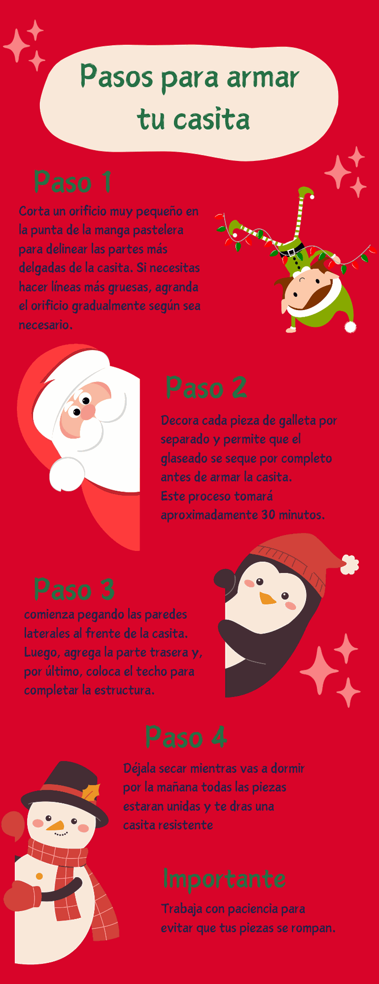 • 3 Mangas con royal icing para decorar: blanco, verde y rojo.